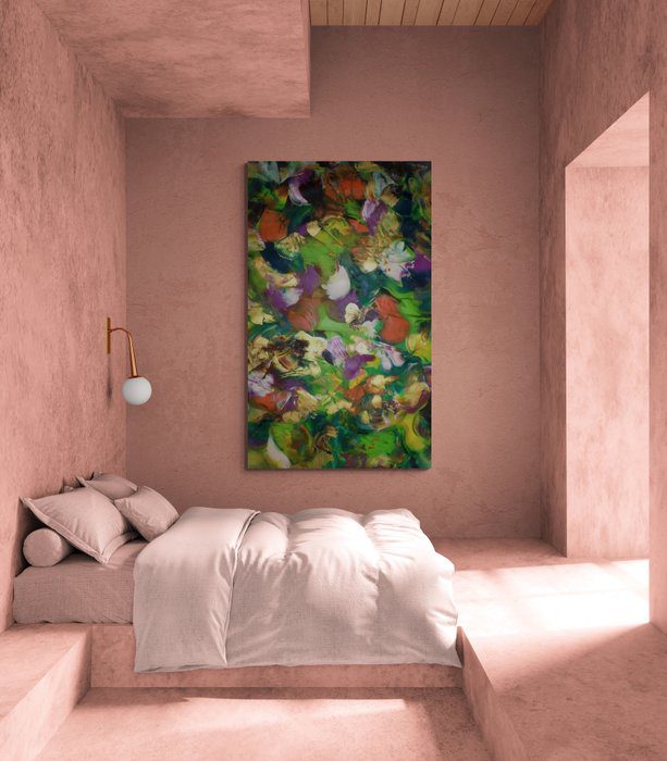 Eventuele kleurverschillen worden bepaald door licht, monitor en camera. In tegenstelling tot afdrukken op canvas bieden mijn met de hand geschilderde unieke kunstwerken een onmiskenbare ervaring. Elke penseelstreek en de textuur van de verf zijn voelbaar en dragen bij aan de unieke uitstraling van elk werk.