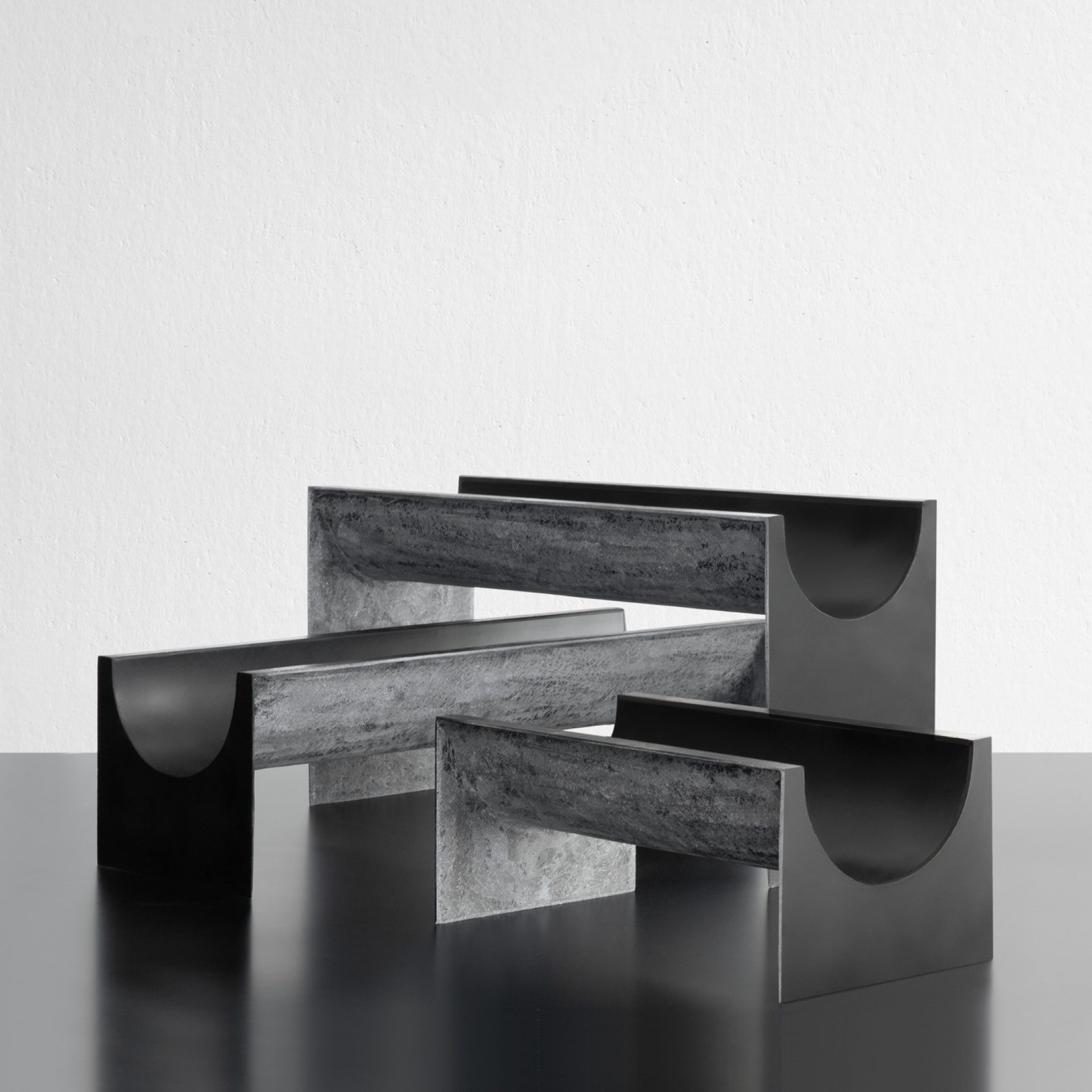 This series of trays merges the timeless Art Déco style with contemporary design. Each one of their elements is inspired by the bravery of the architecture, the symmetry and the balance of the 1920s buildings. Every small detail conveys dynamism and movement, whilst the variety of available sizes allows for every harmonic, customisable ensemble.