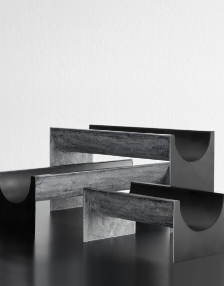 De kandelaar vindt zichzelf opnieuw uit, vernieuwt zich en schiet omhoog. Ontwikkeld in een hoge versie, is hij geïnspireerd op de ontmoeting tussen twee halzen van wijn- of champagneflessen.