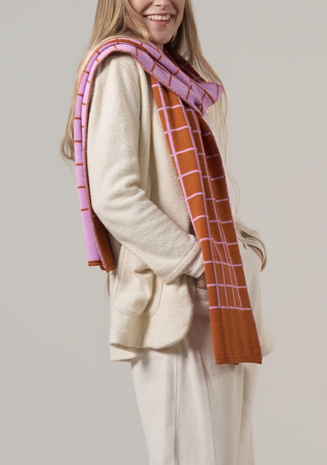 Elke sjaal in deze collectie weerspiegelt haar ziel en is met zorg en passie geweven. Ze zijn vervaardigd in België met de beste Italiaanse garens – 50% wol, 50% acryl – en combineren zachtheid, duurzaamheid en tijdloze elegantie.