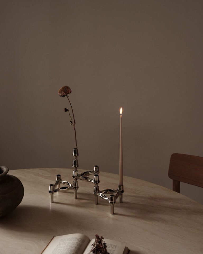 De BMF-vaas is een nieuwe toevoeging aan onze collectie BMF-ontwerpen. Hij is ontworpen als een natuurlijke voortzetting van de karakteristieke BMF-vorm en kan prachtig worden gecombineerd met de kandelaars. De vaas voegt een extra dimensie toe aan de kandelaar en stelt u in staat om de kandelaar te stylen met seizoensbloemen.